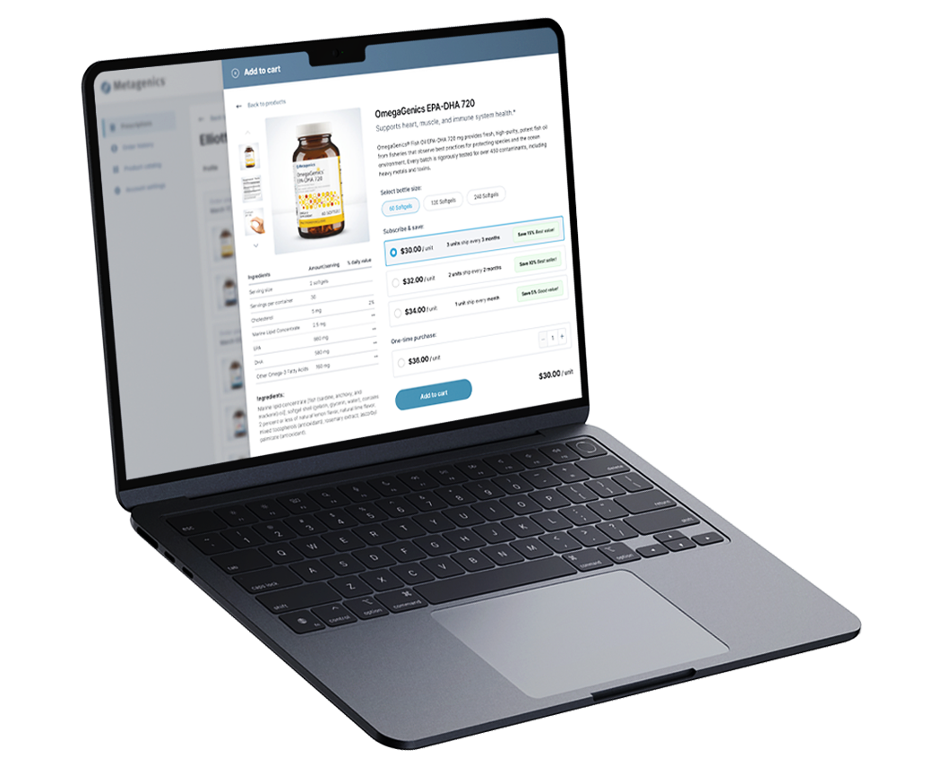 Designed mobile-first B2B2C ecommerce platform enabling practitioners to make nutritional recommendations with a focus on greater patient adherence and outcomes.
