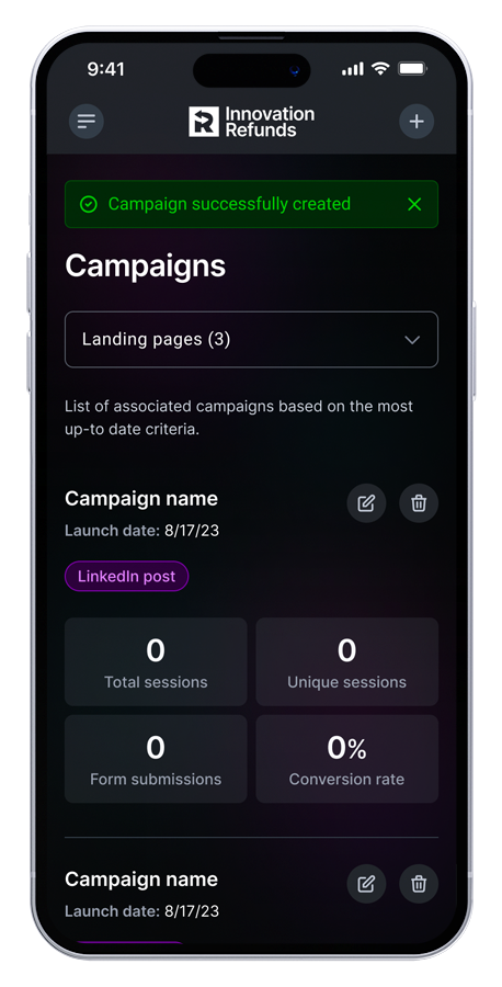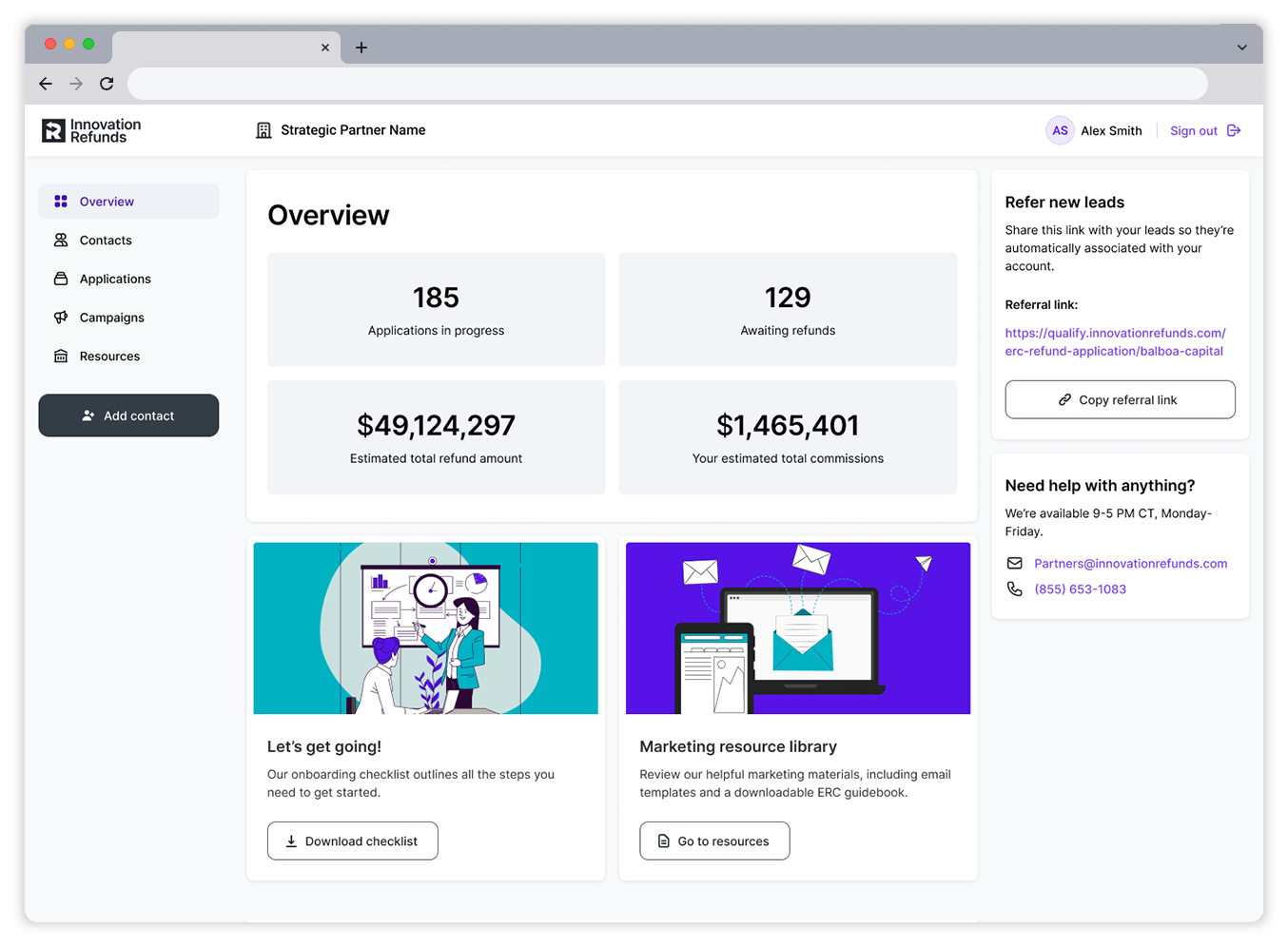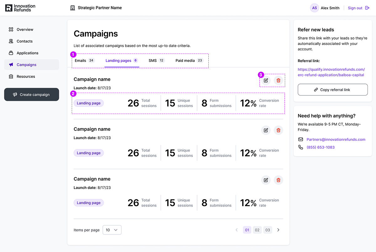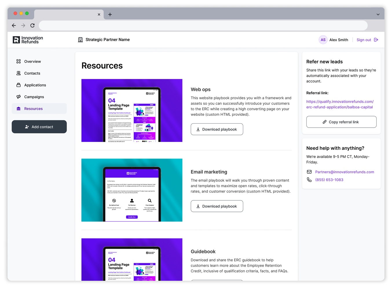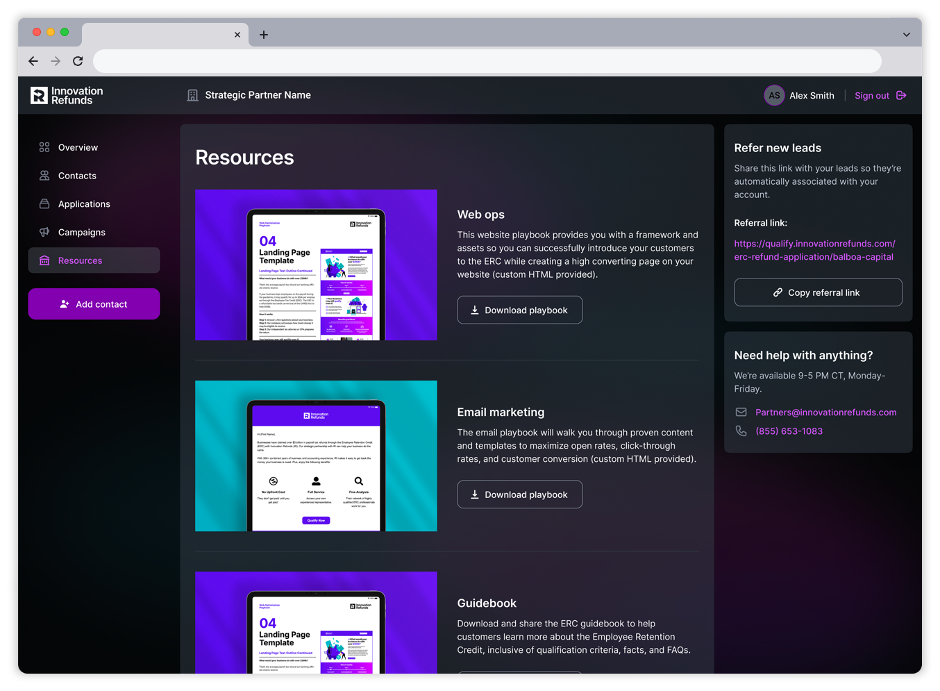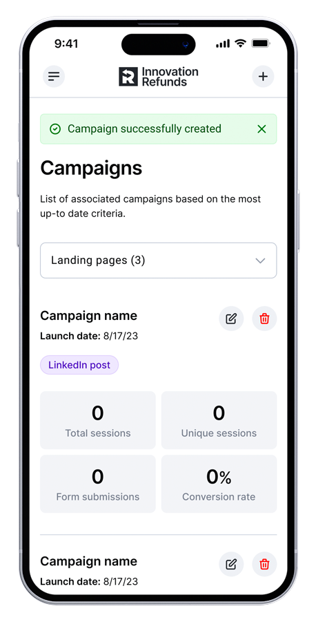 As an affiliate customer, I want the ability to easily create marketing campaigns to promote Innovation Refunds services for providing tax credits so that I can drive customer adoption.