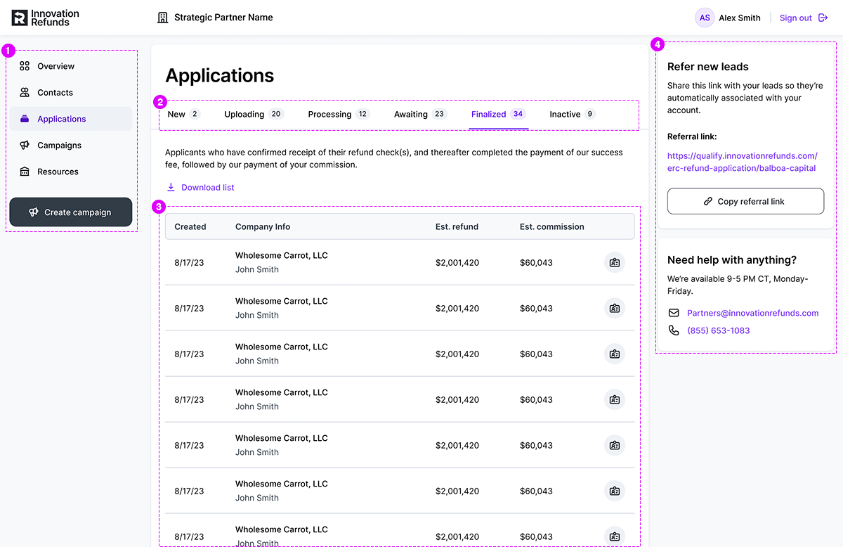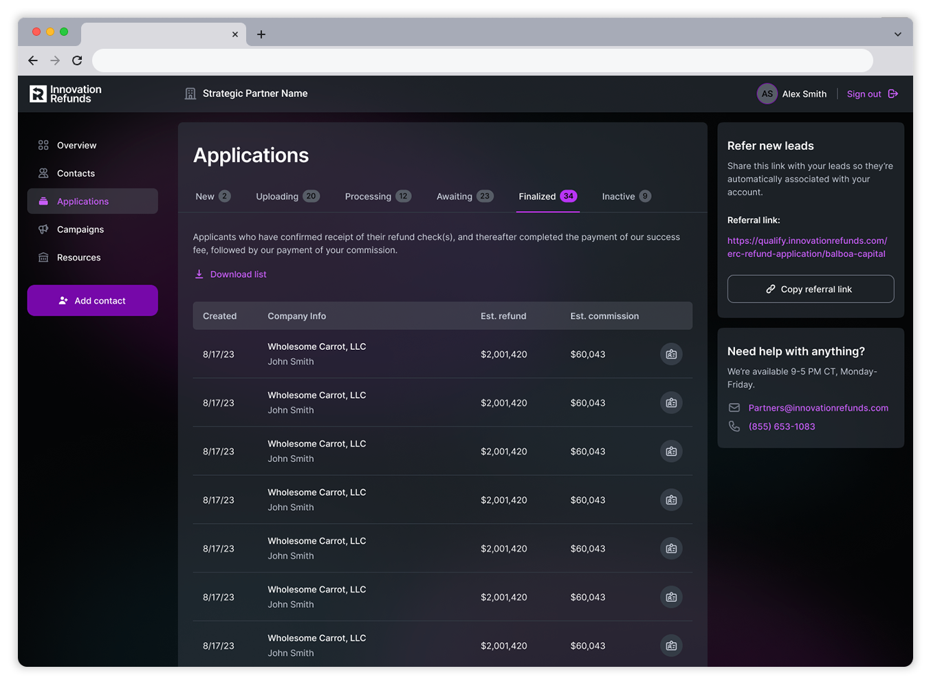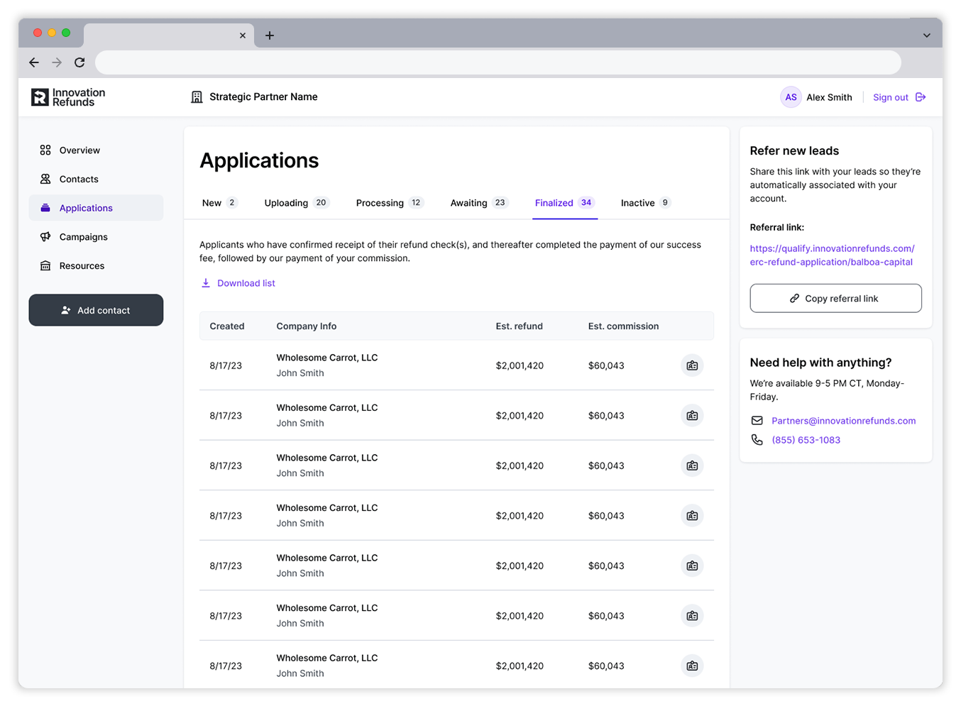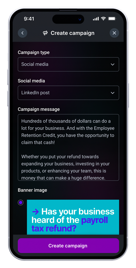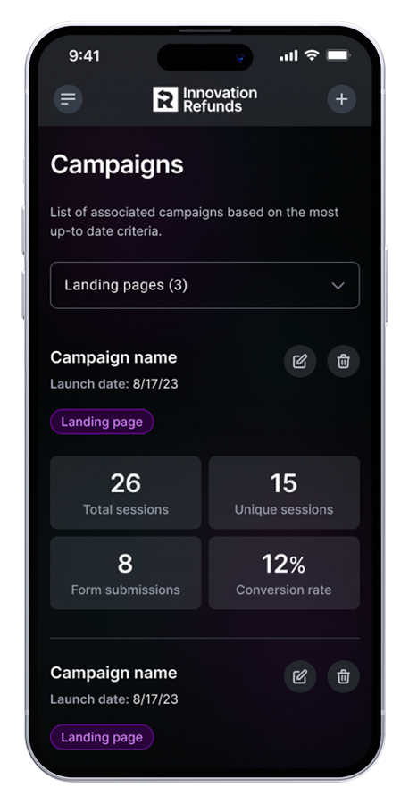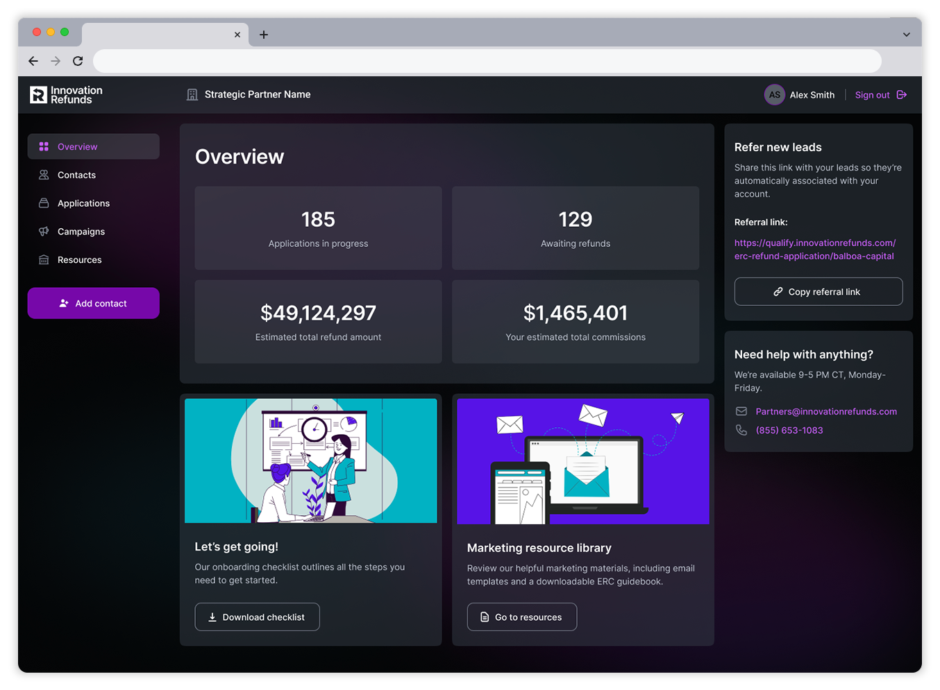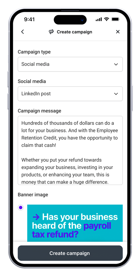 As an affiliate customer, I want the ability to easily create marketing campaigns to promote Innovation Refunds services for providing tax credits so that I can drive customer adoption.