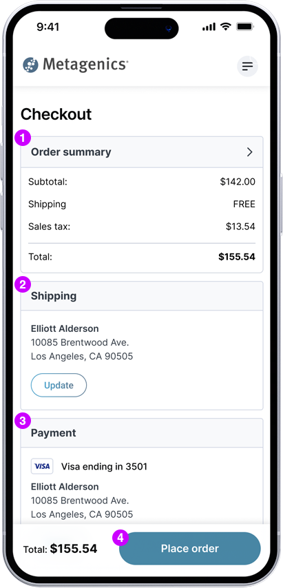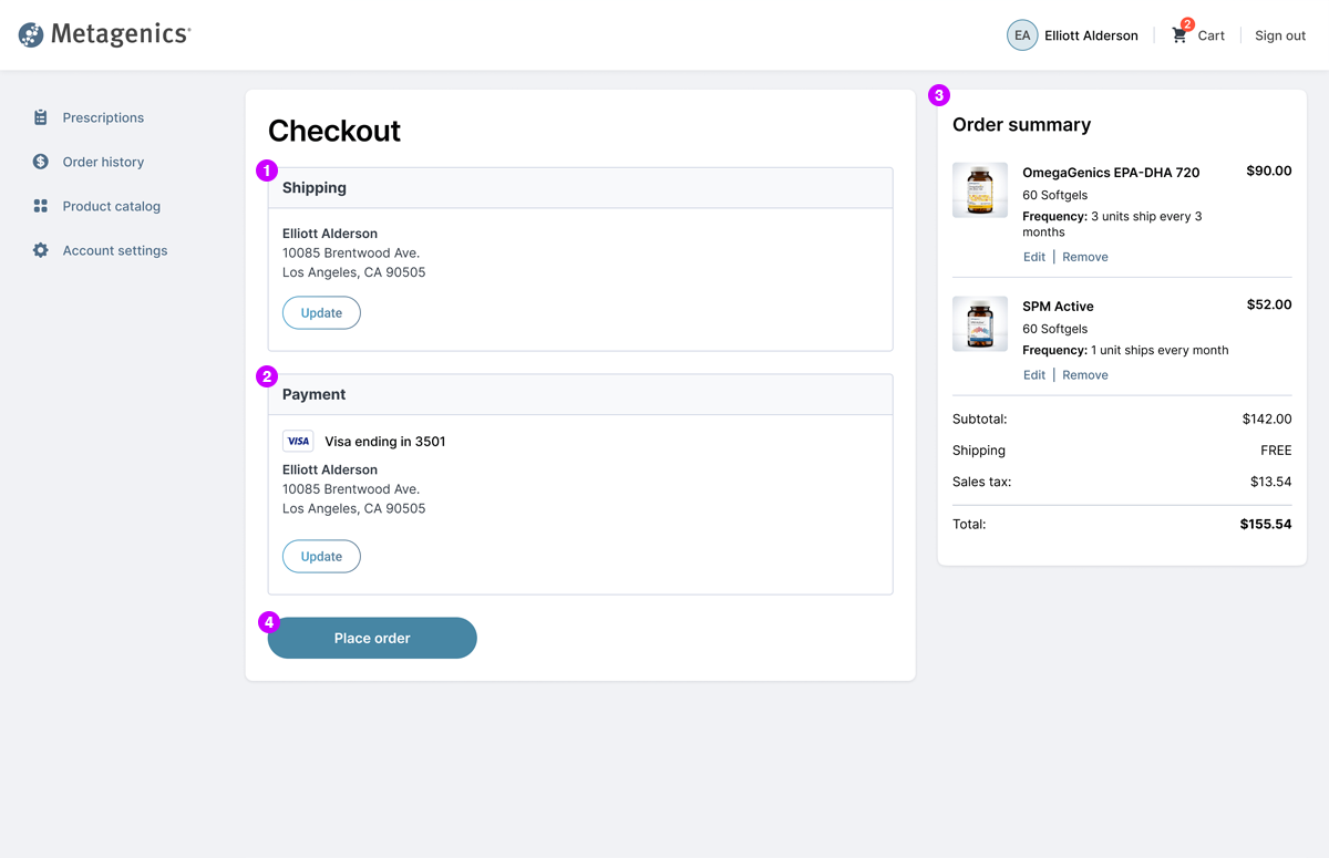 4Patient clicks "Place order" to complete the transaction.