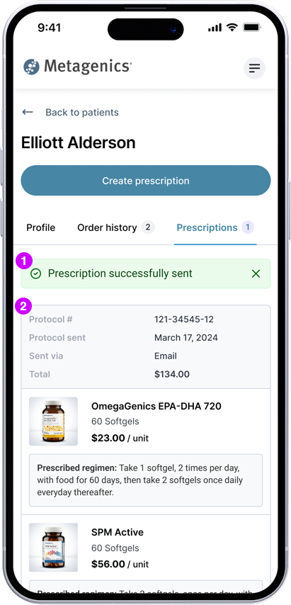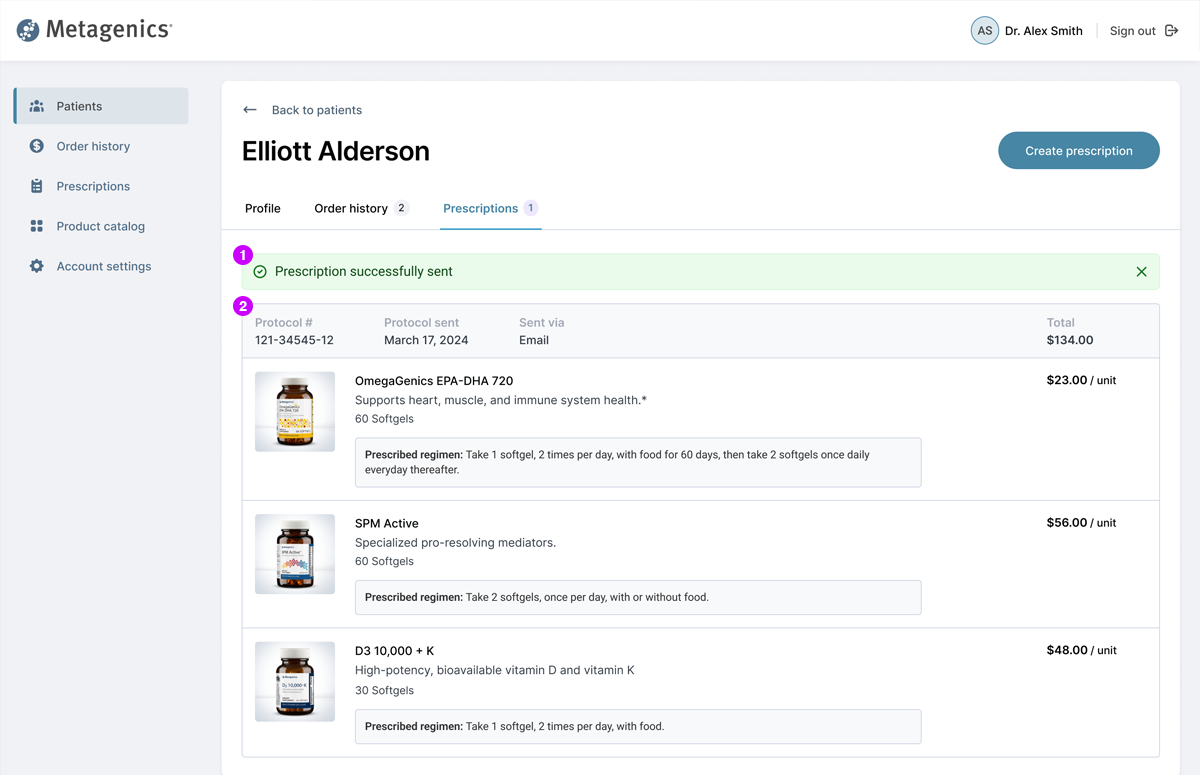 2Prescription summary show all products physician has sent to the patient.