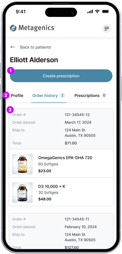 1Patient can expand order summary to view products.