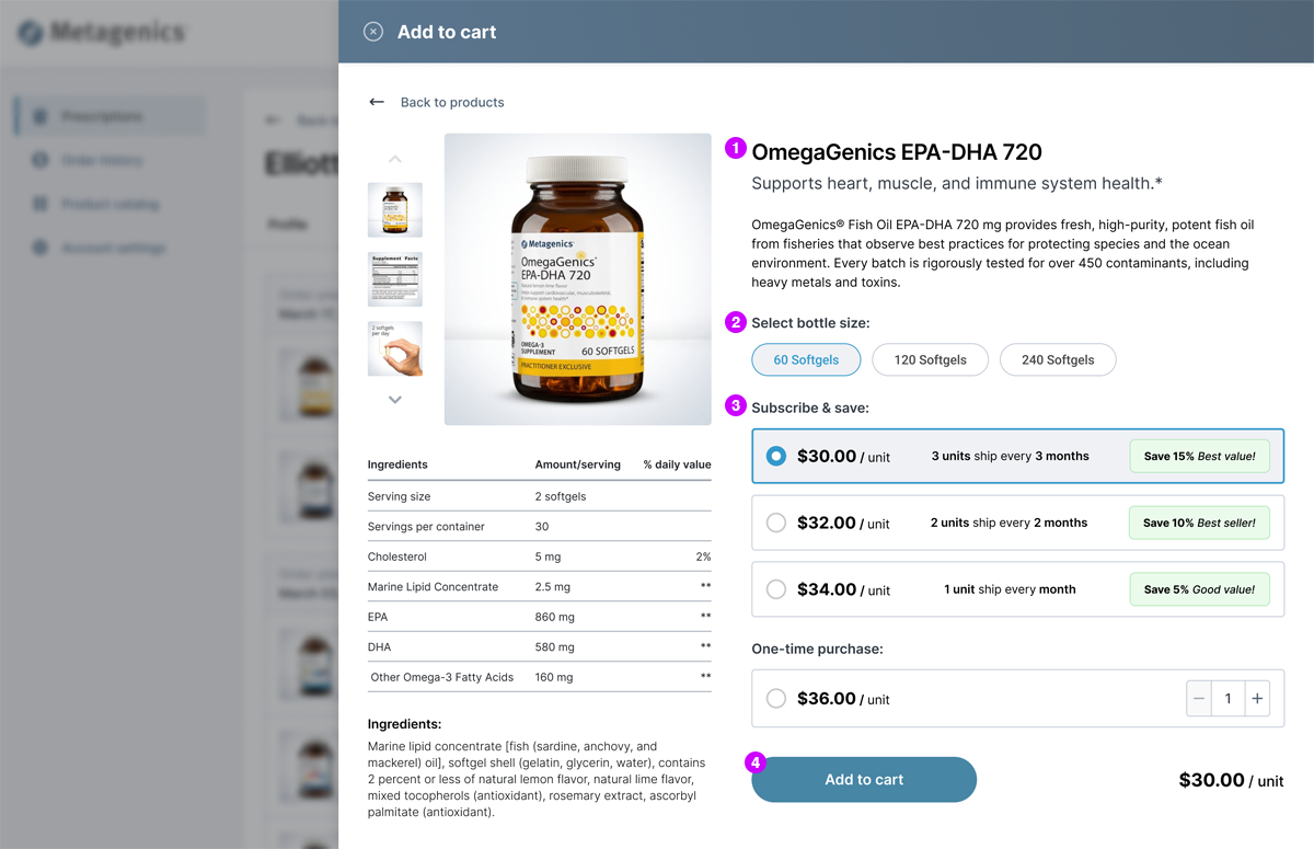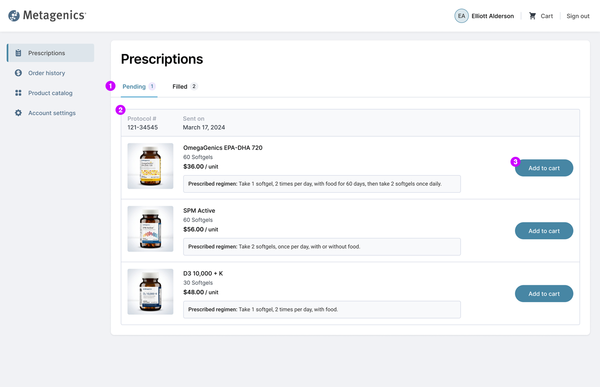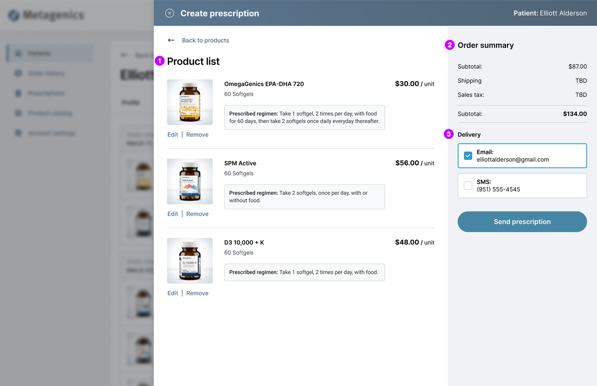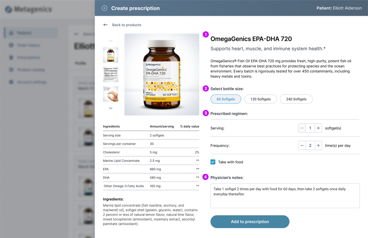 Metagenics needed a new approach to facilitate physician-to-patient prescriptions for nutritional supplements. The existing B2B2C ordering platform allowed patients to purchase products from their physician, but lacked functionality for physicians to initiate protocols for their patients.