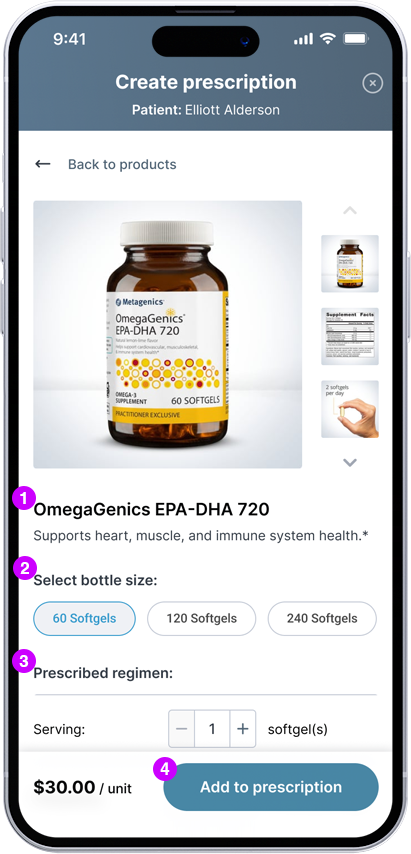 "I need a digital solution to create nutritional supplement prescriptions for my patients that allows them to easily view, edit, and checkout with the products I recommend."