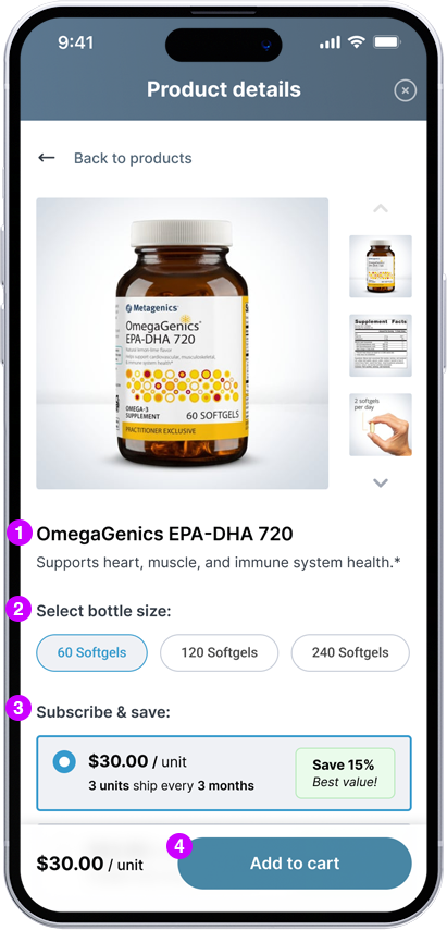 1Patient can see product description and ingredient facts to learn more about the product.